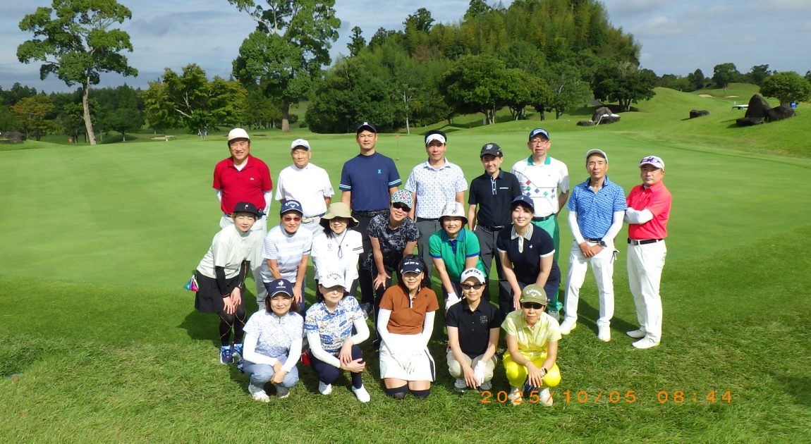 3人目の女性はつま先上がり・右足下がりのラフ。ダウンスウィングのヘッドをしっかり残して入射角を上げ2オンでした。